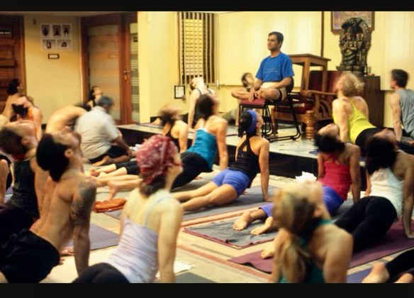 ** The photos above are screen shots of the new/old KPJAYI Shala in Gokulam, Mysuru, with R Sharath Jois doing the teaching honors. Credit where credit is due!
